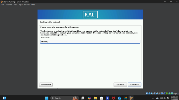 - Masukkan hostname dan domain (biarkan default jika tidak yakin)